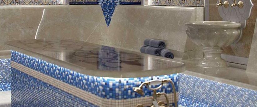 При строительстве хамама используется натуральный камень, мозаика или СПА-керамика.