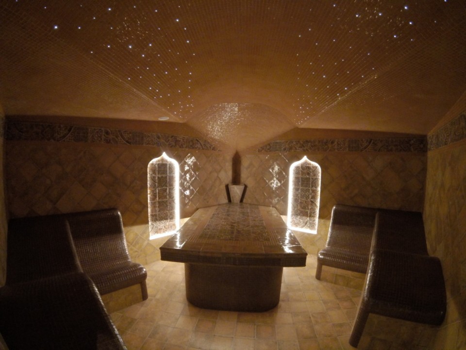 Хамам — не просто баня, заполненная паром, а сложная инженерная конструкция. Каркас парной — это купол из специальных термостойких плит. Внутри парной устанавливаются подогреваемые лежаки и кресла, монтируется “теплый” пол, подводятся сантехнические коммуникации, подключается парогенератор и другие технические элементы.
